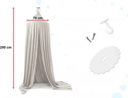 De grijze hangende hemel is een prachtige toevoeging aan de kinderkamer en geeft het interieur comfort, privacy en een magische sfeer. Dankzij het zachte, soepel vallende materiaal is hij ideaal boven het bedje, op een speelmatras of in een leeshoek.