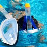Geniet zorgeloos van het ontdekken van de onderwaterwereld met dit volgelaatsnorkelmasker in maat L/XL. Het biedt natuurlijk ademen via neus én mond, een panoramisch zicht en antifog luchtcirculatie tegen condens. Dankzij het dry-top droogsystem komt er geen water in de snorkel en de verstelbare elastische band zorgt voor een comfortabele en veilige pasvorm.