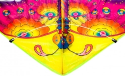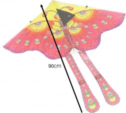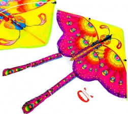 Kleurige vlindervlieger met een breedte van 90 cm van duurzaam nylon, voor gemakkelijk vliegen zelfs bij zwakke wind. Inclusief een stevige nylon lijn met handvat, lichte constructie en aantrekkelijk design voor plezier voor het hele gezin.