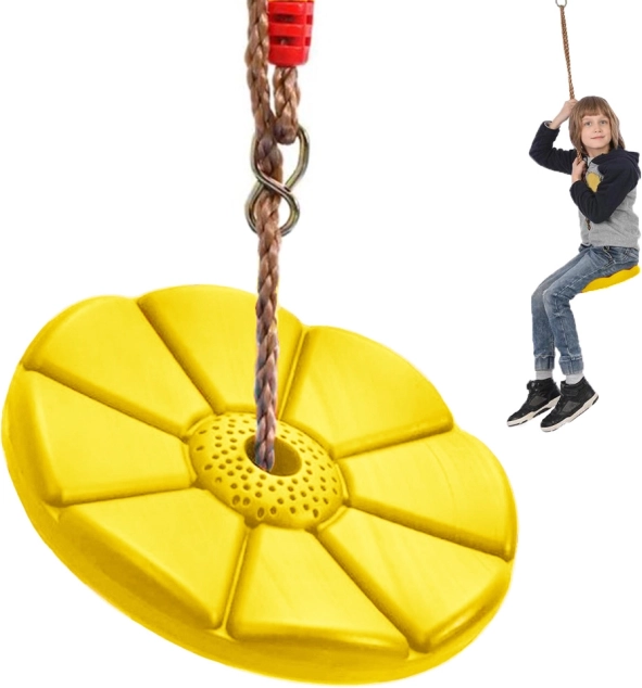 Deze schommel met een gladde bloemvormige zitting is ideaal voor in de tuin, op het terras en zelfs binnen. Dankzij de verstelbare touwen hang je hem gemakkelijk aan een boom of speelconstructie en geef je kinderen actieve beweging en plezier in de buitenlucht.