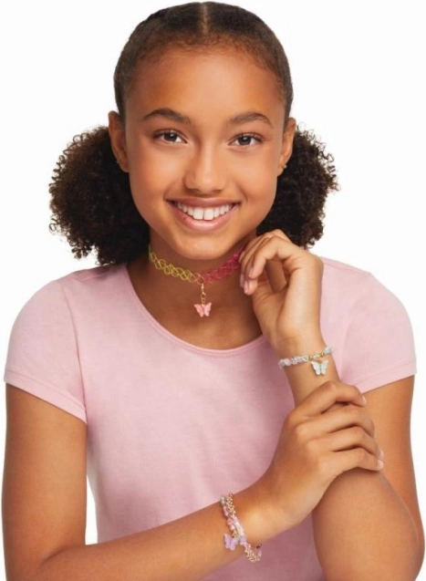 Maak je eigen collectie modieuze accessoires met deze geweldige sieradenset! Bevat alles wat je nodig hebt om *drie armbanden* en *twee kettingen* te maken, inclusief een trendy *elastische choker*.