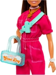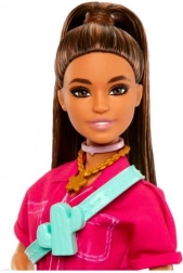 Ontdek moderne stijl en eindeloos speelplezier met de Barbie brunette in een roze overall. Het gladde bruine haar in een hoge paardenstaart, witte schoenen en opvallende accessoires geven elk spel extra flair. Ideaal voor kinderen die van mode, het samenstellen van outfits en stedelijke rollenspellen houden.