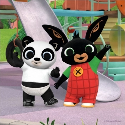 De drievoudige puzzelset met het geliefde konijntje BING brengt drie kleurrijke afbeeldingen met Flop, Sula en Pando. Elke puzzel heeft 55 stukjes en biedt precies de juiste uitdaging voor kinderen vanaf circa 5 jaar. Puzzelen ontwikkelt de fijne motoriek, het logisch denken en het concentratievermogen.