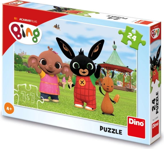 Leuke kinderpuzzel met het thema BING bevat 24 grote stukjes, ideaal voor kleine handjes. In de kleurrijke scène genieten Bing, Sula en Flop van een ijsje op het grasveld. Puzzelen ondersteunt fijne motoriek, logisch denken en fantasie bij kinderen vanaf 4 jaar. Gemaakt in Tsjechië van hoogwaardige, veilige karton.