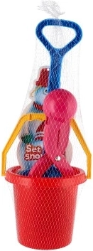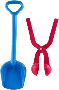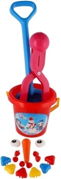 Alles wat je nodig hebt voor het eenvoudig en leuk bouwen van een sneeuwpop - emmer, schep en vormpjes.