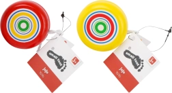 Klassieke houten jojo met een gekleurde spiraal in gele kleur is een fascinerend bewegend speelgoed voor kinderhandjes. Trainen van motoriek en het vergroten van enthousiasme voor eigen vaardigheden.