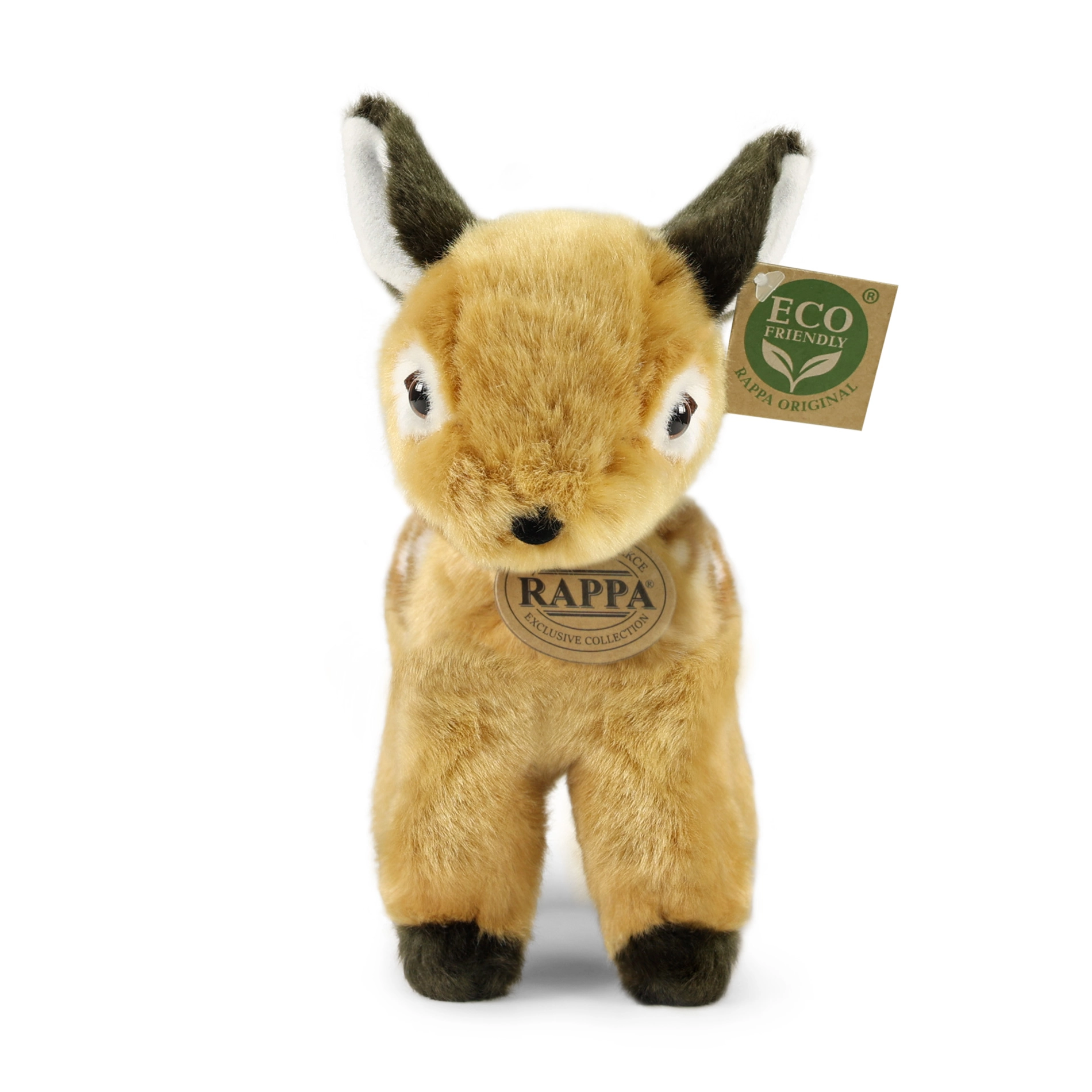 Rappa Pluchen hertenjong 22 cm ECO-FRIENDLY Een prachtig pluchen hertenjong mag in geen enkele kinderkamer ontbreken! Het hertenjong van 22 cm is gemaakt van hoogwaardig pluche en maakt deel uit van een exclusieve collectie pluchen speelgoed. Belangrijkste kenmerken: ECO-FRIENDLY Wat betekent ECO-FRIENDLY eigenlijk? De vulling van het pluchen speelgoed is gemaakt van gerecyclede PET-flessen. Dit materiaal is volledig veilig, voelt aan als standaardvulling en is volledig gecertificeerd voor de veiligheid, zelfs voor de allerkleinsten. We hebben gekozen voor een groene weg die het milieu zo min mogelijk belast – de ECO-FRIENDLY weg.