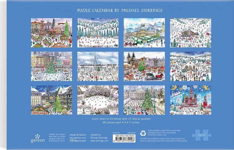 Beleef de magie van het aftellen naar de feestdagen met een adventskalender vol plezier: bevat 12 afzonderlijke puzzels van elk 80 stukjes, ontworpen door de bekroonde illustrator Michael Storrings. Open elke dag een van de traditionele luikjes, leg een winterse scène en geniet van een gezellige kerstsfeer.
