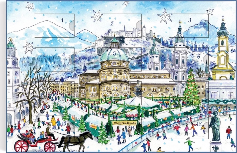 Deze originele adventskalender combineert feestelijke decoratie met ontspannend plezier voor jong en oud. Na het uitschuiven van de buitenhoes verschijnt het binnenpaneel met 12 luikjes, waarachter geïllustreerde puzzels schuilgaan. Elk motief vangt de kerstsfeer van over de hele wereld in de stijl van Michael Storrings.