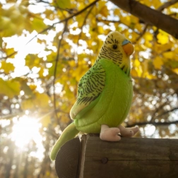 Biedt een natuurgetrouwe uitstraling en een prettig gevoel. Elke parkiet heeft gedetailleerd verwerkte veren, realistische kleuring en bij een lichte druk op het buikje klinkt authentiek getjilp dat spel en zintuiglijke ontwikkeling stimuleert.