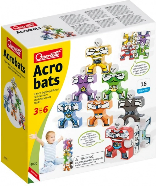 Bouw kleurrijke piramides van Quercetti Acrobats-figuurtjes en geniet van een balans-stapelspel dat de fijne motoriek, coördinatie en creativiteit van kinderen vanaf 3 jaar stimuleert. In de doos zitten 16 duurzame figuren en verwisselbare zachte inlays voor eindeloze combinaties.