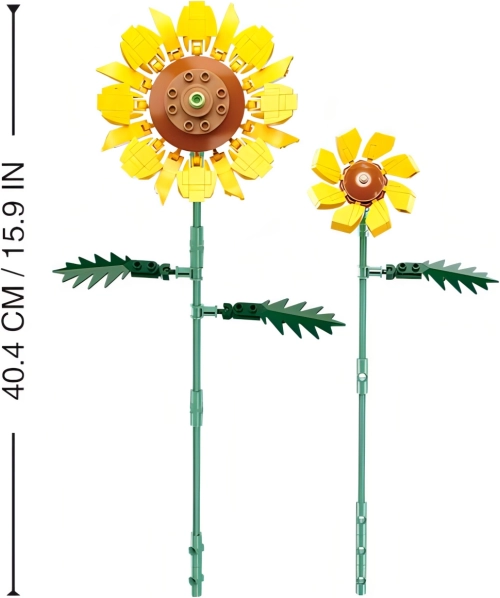 Na het bouwen krijg je twee opvallende zonnebloemen en vier verfijnde margrieten – de perfecte decoratie voor in huis én een origineel cadeau voor liefhebbers van bloemen en bouwsets.