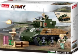 Bouw de legendarische Amerikaanse tank M4A3 Sherman en beleef uren speelplezier met de Sluban Army WW2 bouwset. De set biedt 2 bouwvarianten, 715 onderdelen en 3 minifiguren met beweegbare delen. De onderdelen zijn compatibel met LEGO, COBI en Mega Bloks en vervaardigd uit duurzaam, veilig ABS-kunststof.