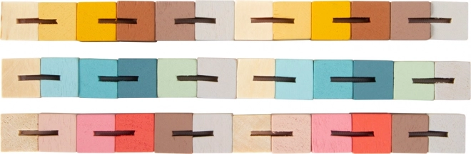 Het hout is geverfd in trendy pasteltinten, wat het speelgoed een moderne uitstraling geeft.