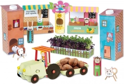 Eco dorpje van het merk Lena biedt je de mogelijkheid om te recyclen in plaats van weg te gooien. Met deze creatieve box verander je oud verpakkingsmateriaal in een klein dorpje met een markt, tuintje en huizen.