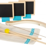 De set bevat een praktische katoenen zak met trekkoord, zodat het speelgoed eenvoudig kan worden meegenomen.