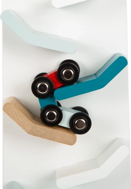 De houten cascadebaan is het ideale speelgoed voor de ontwikkeling van de creativiteit en motoriek van kinderen. Zodra je de kleurrijke autootjes vanaf de top loslaat, beginnen ze ratelend naar beneden te rollen over de baan, wat voor veel plezier en opwinding zorgt. De moderne combinatie van kleuren met wit en natuurlijk hout maakt van deze set ook een esthetisch aantrekkelijke decoratie voor elke kinderkamer.