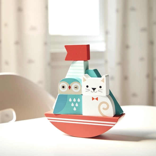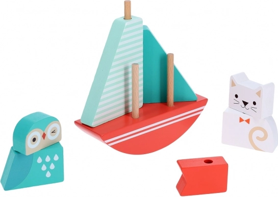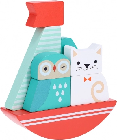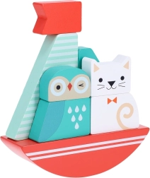 We presenteren een schattig houten speelgoed, ideaal voor de kleinste ontdekkers. De stapelbare en uitgebalanceerde boot met het motief van een uil en een kat biedt creatieve en educatieve pret voor kinderen vanaf 12 maanden. Dit speelgoed bestaat uit robuuste houten onderdelen die prettig aanvoelen en de creativiteit stimuleren.
