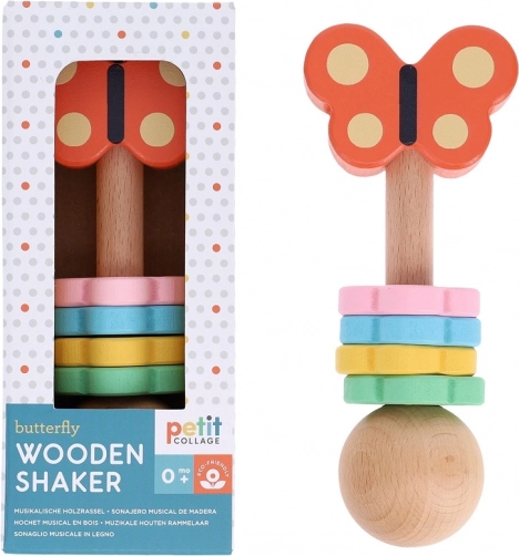 De zachte en kleurrijke rammelaar Vlinder van het merk Petit Collage is de ideale metgezel voor de allerkleinsten. Bij zacht schudden geeft hij aangename geluiden die helpen bij de ontwikkeling van het gehoor en het ritmegevoel.