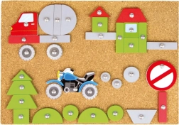 Het spel is gemaakt van hoogwaardige materialen – kurk, hout en metaal – en is geschikt voor kinderen vanaf 3 jaar. De ontwikkeling van de fijne motoriek en oog-handcoördinatie verloopt op een speelse manier die kinderen boeit.