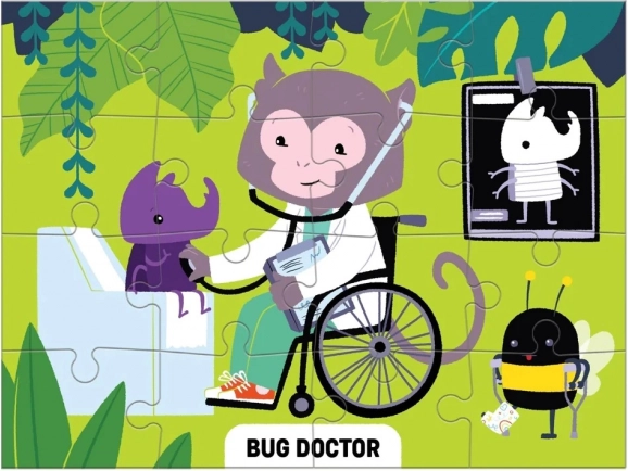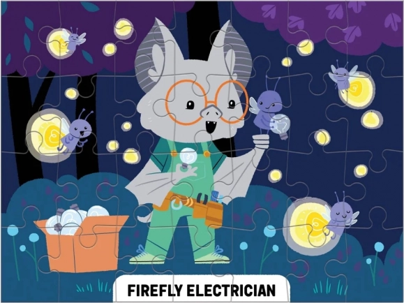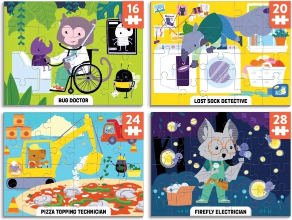 Ontdek vier leuke puzzels in één doos! De set Mudpuppy Level Up! biedt puzzels met verschillende moeilijkheidsgraden (16, 20, 24 en 28 stukjes) die kinderen creatieve en grappige beroepen laten ontdekken – van vuurvlieg-elektricien tot keverdokter. De puzzels zijn gemaakt van gerecyclede materialen, hebben een mat oppervlak voor zuivere kleuren en zijn verpakt in een stevige doos, ideaal voor herhaald gebruik en als origineel cadeau.