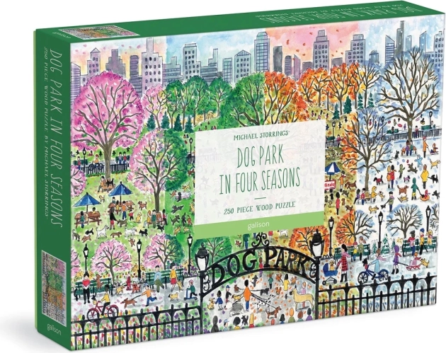 Ontdek de charme van een stadspark in de lente, zomer, herfst en winter. De houten puzzel met illustratie van Michael Storrings blinkt uit door een vibrant kleurenpalet en gedetailleerde afwerking, waardoor elke puzzelsessie een leuke en rustgevende ervaring is. Dankzij de kwalitatieve houten stukjes behouden ze perfect hun vorm en gaan ze lang mee, zelfs bij veelvuldig gebruik.