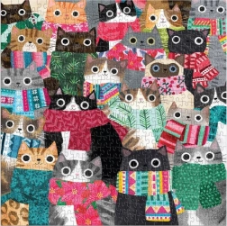 Ontdek het plezier van puzzelen met een puzzel die liefhebbers van katten én kwaliteit aanspreekt. Het winterse motief met kattenvriendjes in warme sjaals komt tot leven dankzij hoogwaardige bedrukking met niet-giftige inkten en een matte finish die schittering vermindert en subtiele details accentueert.