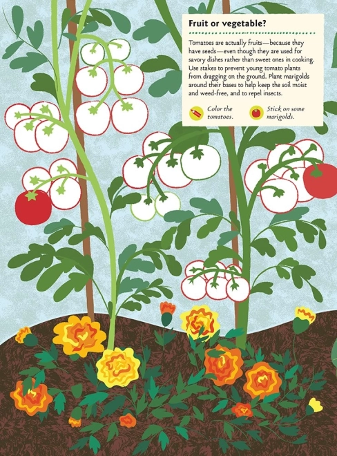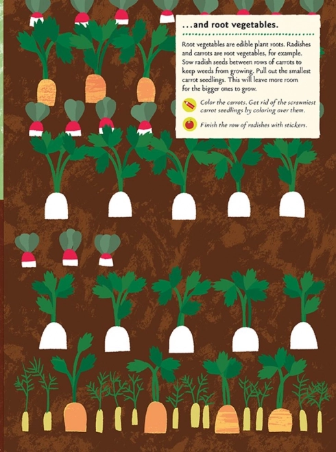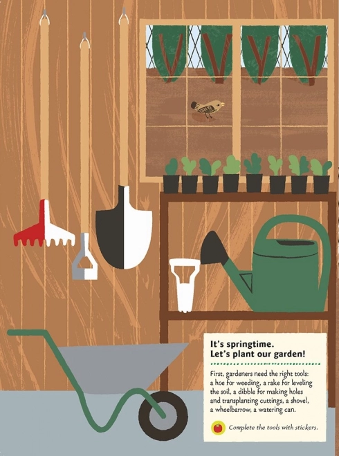 Kleine tuiniers leren verschillende soorten groenten en fruit herkennen, ontdekken hoe je ze juist zaait, water geeft en verzorgt, en welke gereedschappen daarbij nodig zijn. Dankzij de stickers en de quiz is leren leuk, motiverend en vol ontdekkingen.