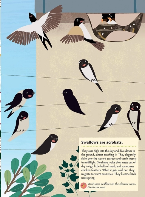 Ontdek de fascinerende wereld van vogels met een creatieve activiteit voor kinderen vanaf 5 jaar. Dit prachtig geïllustreerde boek van Olivia Cosneau biedt 104 stickers, 25 leuke activiteiten en een korte quiz. Kinderen maken spelenderwijs kennis met de diversiteit aan soorten – van nachtegalen en zwaluwen tot kolibries, pelikanen en pinguïns. Het boek is in het Engels en voldoet aan de huidige Europese veiligheidsnormen.
