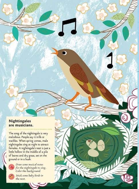 Het bevat een selectie van bekende en exotische soorten – van nachtegaal en zwaluw tot papegaai, toekan en flamingo – en biedt ook leuke feitjes (bijvoorbeeld over het kleinste vogeltje ter wereld). Het boek is ideaal voor thuis knutselen, reizen en vrijetijdsactiviteiten.