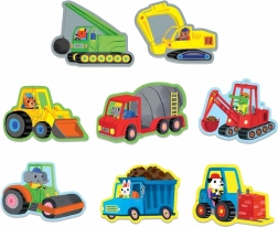 - 8 afbeeldingen van bouwmachines – eenvoudige 2-delige puzzels