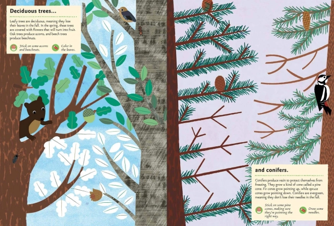 Dit originele activiteitenboek brengt de veelzijdigheid van de boswereld speels tot leven – van kegels en mossen tot bloemen en bessen. Met stickers en tekenopdrachten leren jonge ontdekkers de natuur herkennen en hun vaardigheden ontwikkelen. Illustraties van Olivia Cosneau geven het boek een unieke artistieke stijl.