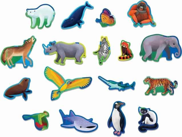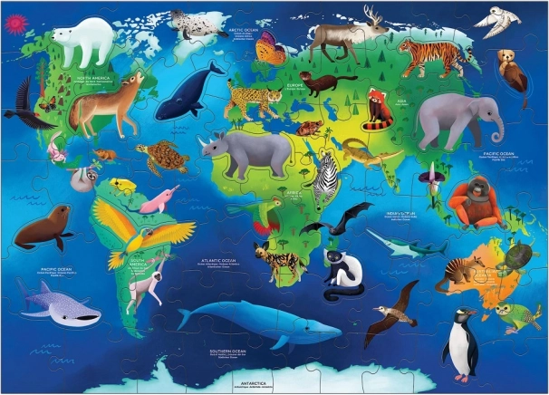 Deze educatieve puzzel helpt kinderen bedreigde diersoorten op verschillende continenten en in oceanen beter te begrijpen. Naast de traditionele stukjes bevat deze puzzel ook 17 speciaal gevormde stukjes die een extra laag plezier en uitdaging toevoegen.