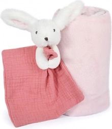 Vul de uitzet van je baby aan met deze cadeauset, met een zacht konijntje-knuffeldoekje en een pluchen deken. Ideaal om je kleintje thuis en tijdens een wandeling comfortabel en beschermd te houden.