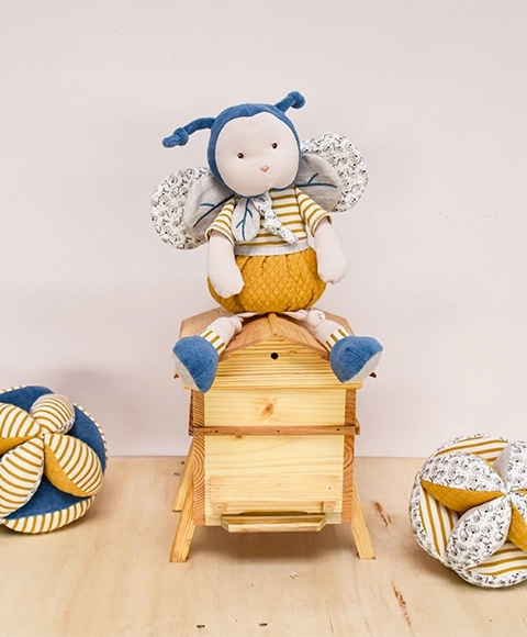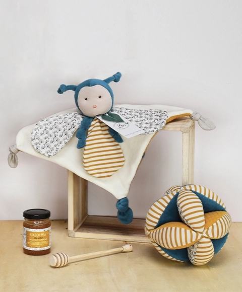 De textiele activiteitenbal Bij is het perfecte speelgoed voor jonge kinderen. De zachte textuur trekt de aandacht en ondersteunt tactiele stimulatie en gemakkelijk vastpakken. Deze bal heeft een geïntegreerde rammelaar die de aandacht trekt en bijdraagt aan de ontwikkeling van het gehoor.