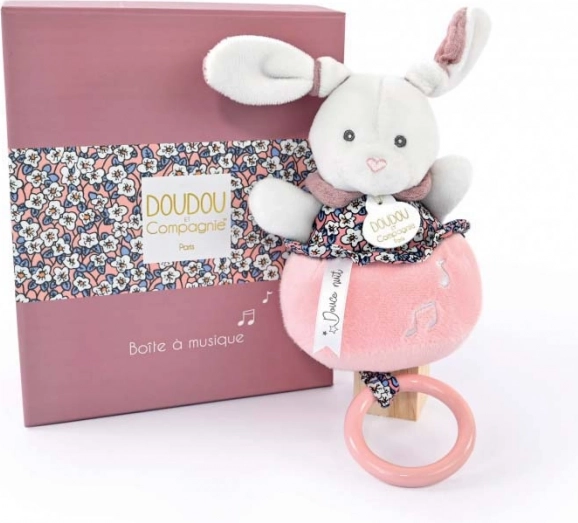 Het schattige roze konijntje uit de DOUDOU-cadeauset is opwindbaar en speelt een rustgevende melodie die je baby naar dromenland begeleidt. Zachte pluche, een wiegmelodie en een stijlvolle cadeaubox maken het een ideaal cadeau voor pasgeborenen.
