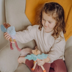 De schattige pop Tará in een vlinderfee-kostuum maakt kinderen vanaf de geboorte blij. Ze heeft een zacht lichaam, een geborduurd katoenen gezicht en wordt geleverd in een geschenkdoos. Stimuleert de fantasie, is heerlijk om mee te knuffelen en voldoet aan de Europese CE-veiligheidsnormen.