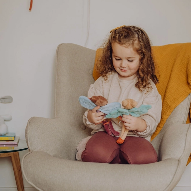 Maak kennis met pop Tará – een zachte vlinderfee in een paarse jurk, met blauwe vleugels en stijlvolle accessoires. Dankzij de zachte materialen is ze ideaal om te knuffelen en voor het eerste spel van de allerkleinsten. Geborduurde gezichtdetails zorgen voor veiligheid zonder kleine onderdelen.