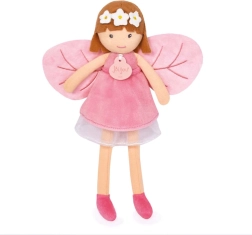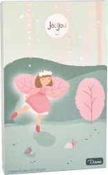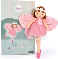 De betoverende pop Diana van het merk Doudou Jolijou maakt kleine dromers blij vanaf de geboorte. Ze heeft een zacht textielen lijfje, geborduurde ogen en mond voor maximale veiligheid en draagt een roze jurkje met vleugels in de vorm van blaadjes. Inclusief een cadeaubox met bosthema – ideaal om te geven.