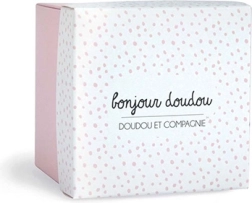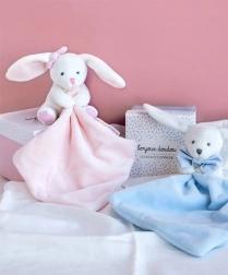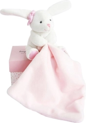 Dit schattige konijntje in een elegante geschenkdoos is een must-have voor elke pasgeboren baby. In wit met roze knuffeldoek is het konijntje uiterst zacht en wordt snel de beste metgezel voor je kind. Het kleine doekje aan de poot dient als een gemakkelijk vast te pakken knuffeldoek.