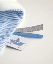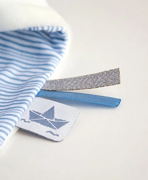 Ontdek de charme van Konijntje Matroos, geleverd in een schitterende cadeauverpakking die moderniteit en luxe uitstraalt. Dit schattige konijntje draagt een blauw-wit gestreept shirt en is versierd met een klein kroontje. In zijn pootje houdt het een dekentje dat als knuffeldoekje dient, gemakkelijk vast te pakken voor de kleine handjes van je kindje.