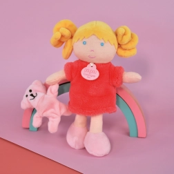 Pop Miss Coral is niet alleen mooi om te zien, maar biedt ook veel plezier. Dankzij de geborduurde gelaatsdetails en haar gele, krullende lokken ziet ze er levendig en authentiek uit. Ze stimuleert niet alleen de creatieve spelletjes van je meisje, maar brengt ook een lieve pluchen vriend mee: het beertje, stevig vastgemaakt aan haar hand.