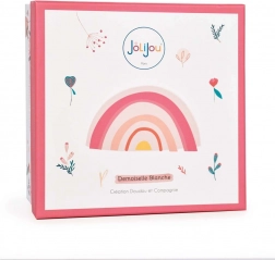 Er zit een klein beertje in kersenrood bij, dat aan het handje van de pop is bevestigd en zo een duo vormt dat perfect is voor elk avontuurlijk spel. Het speelgoed wordt geleverd in een mooie geschenkdoos, wat het tot een ideaal cadeau maakt.
