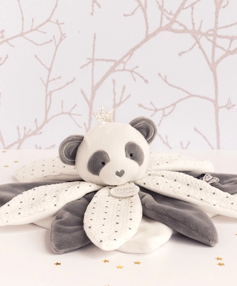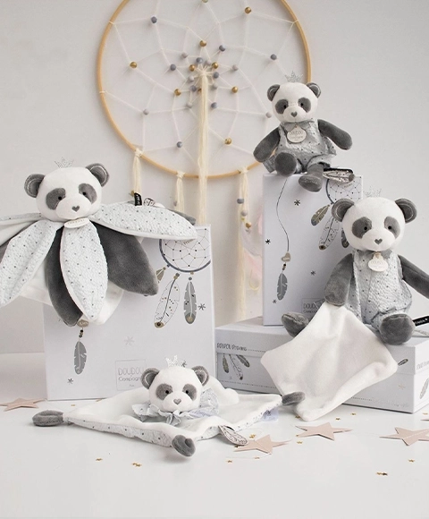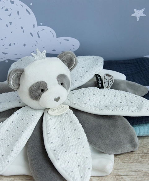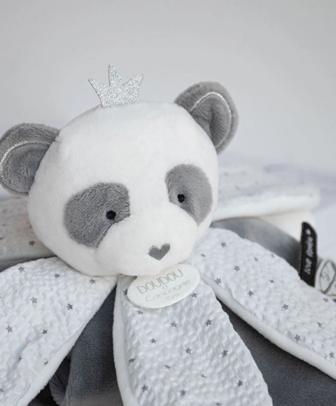 Dit schattige pluchen knuffeldoekje in pandastijl betovert met zijn zachtheid en zachte kleuren. Het zorgt voor comfort tijdens slaap en rust, helpt kalmeren en wordt een favoriete knuffel voor thuis en onderweg. Dankzij de hoogwaardige afwerking en zachte materialen is het mild voor de gevoelige babyhuid.