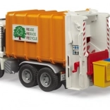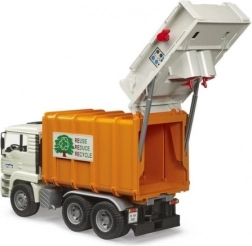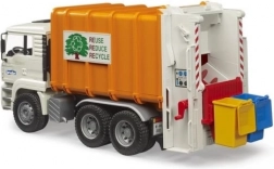 De realistische vuilniswagen BRUDER MAN TGA op schaal 1:16 zal zowel kleine als grote techniekliefhebbers enthousiast maken. Hij heeft een kantelbare cabine, een werkende pers met twee schroeftransporteurs, achterdeuren die openen met vergrendeling en twee meegeleverde vuilnisbakken. Gemaakt van duurzaam ABS-kunststof in Duitsland, compatibel met Bworld-figuren en ideaal voor kinderen vanaf 3 jaar.