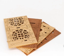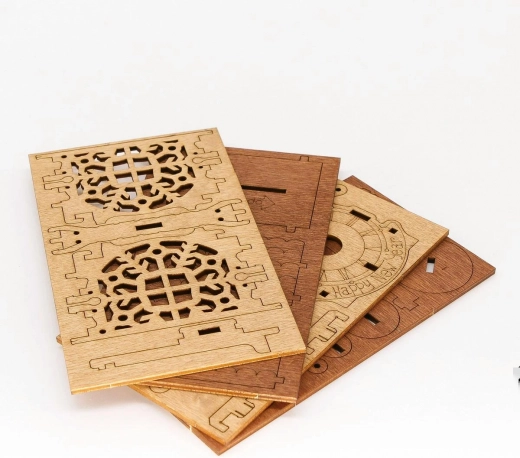 Het doosje is gemaakt van hoogwaardig natuurlijk hout met gedetailleerde laseruitsparingen en oogt zowel rustiek als elegant. Perfect als originele cadeauverpakking, nieuwjaarsdecoratie of klein geschenk voor liefhebbers van raadsels en escape games.