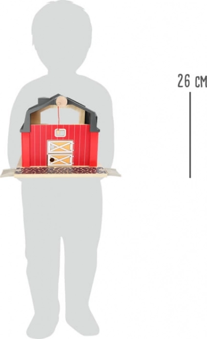 Deze houten boerderij SMALL FOOT is een ideale speelset voor kinderen vanaf 3 jaar. Hij biedt realistische speelelementen – een schuur met dubbele deuren, een werkende kraan om hooi op de bovenverdieping op te slaan en magnetische balen die gemakkelijk kunnen worden opgetild en vervoerd met de meegeleverde tractor met aanhanger. De set bevat ook een paard, koe, biggetje en zes delen afrastering.