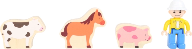 Schuur, tractor met aanhanger, dieren en een afrastering – alles wat kinderen nodig hebben om hun eigen boerenverhalen te bedenken.