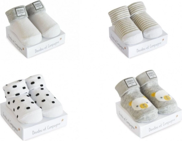 Stijlvolle en comfortabele babysokken DOUDOU in een geschenkverpakking voor baby’s van 0–6 maanden. Ideaal als origineel kraamcadeau, in universele kleuren die makkelijk te combineren zijn. De sokken zijn zacht, duurzaam en aangenaam aan te raken. Prijs is voor 1 paar.