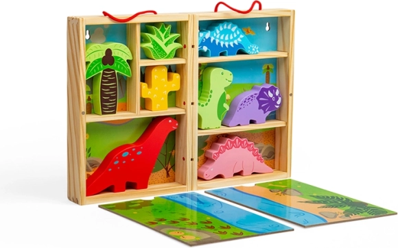 Deze draagbare speelgoedbox met dinosaurus-thema is ideaal voor kinderen vanaf 18 maanden die de wereld van dinosaurussen willen ontdekken en hun creativiteit en verbeelding willen ontwikkelen. Stimuleert creativiteit en verbeelding, dankzij het ontwerp gemakkelijk mee te nemen en ideaal voor op reis.